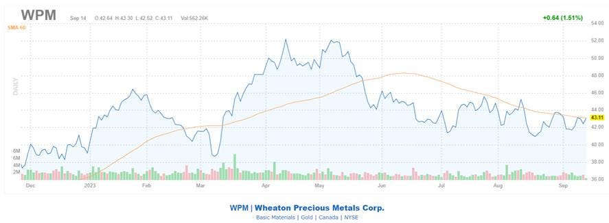 Canada-based Wheaton Precious Metals (WPM) streams exactly what its name implies—precious metals. The stock itself has had a solid year, up roughly 10% in 2023. And despite a 2% weekly gain so far, the recent price action has WPM encountering a historically bearish trendline.