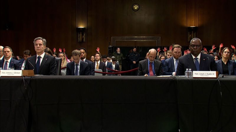 Blinken’s opening remarks at the hearing were quickly interrupted by a series of protesters who shouted for an immediate ceasefire.